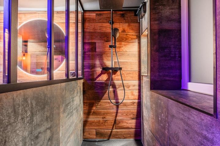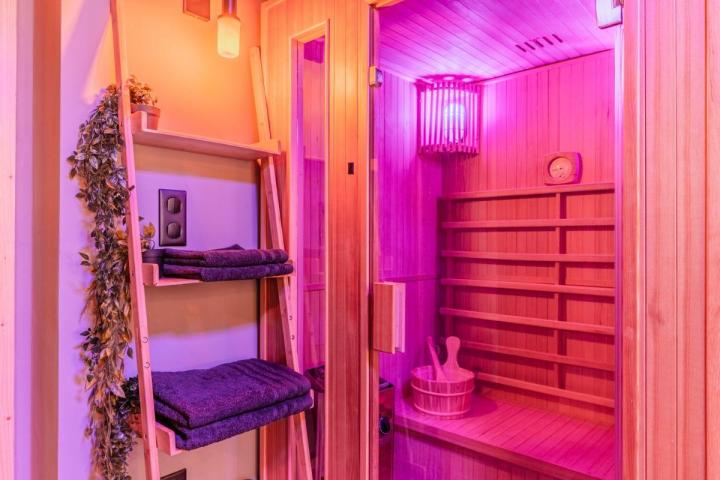 Enjoy a luxurious LUXE Queen Size bed, a double bath, a sauna and a massage table and elegant decorations that invite to relaxation and passion.